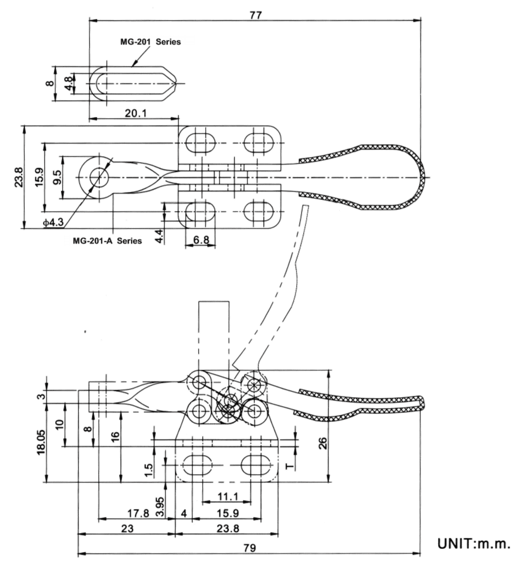 U型壓把→壓把長度=20.1mm,壓把高度=8mm
