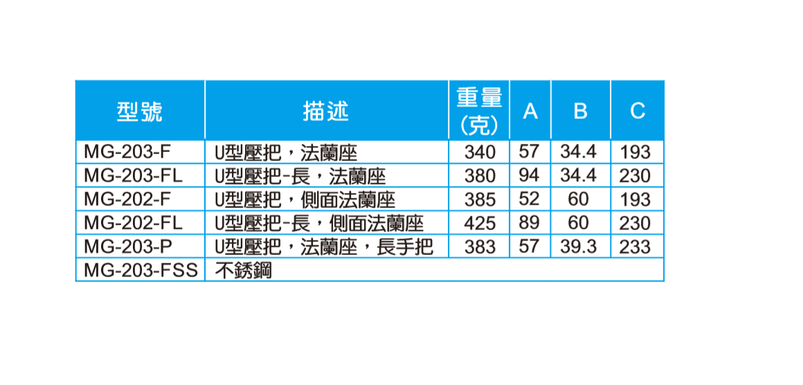 U型壓把→壓把長度=57mm,壓把高度=34.4mm