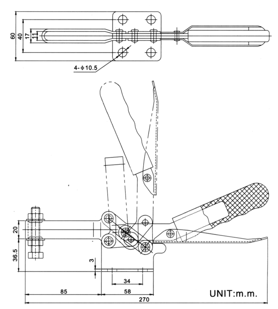 U型壓把→壓把長度=85mm,壓把高度=36.5mm
