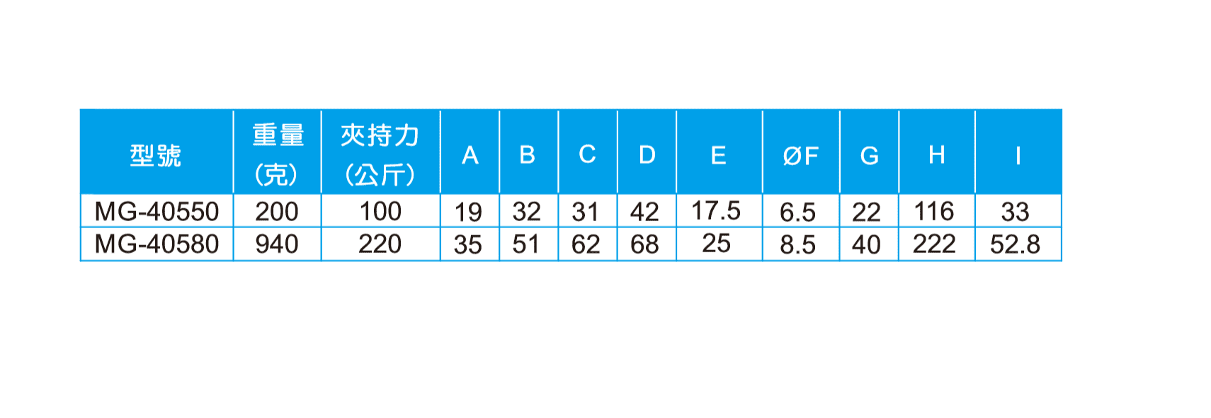 HOLDING CAPACITY(夾持力):100kg