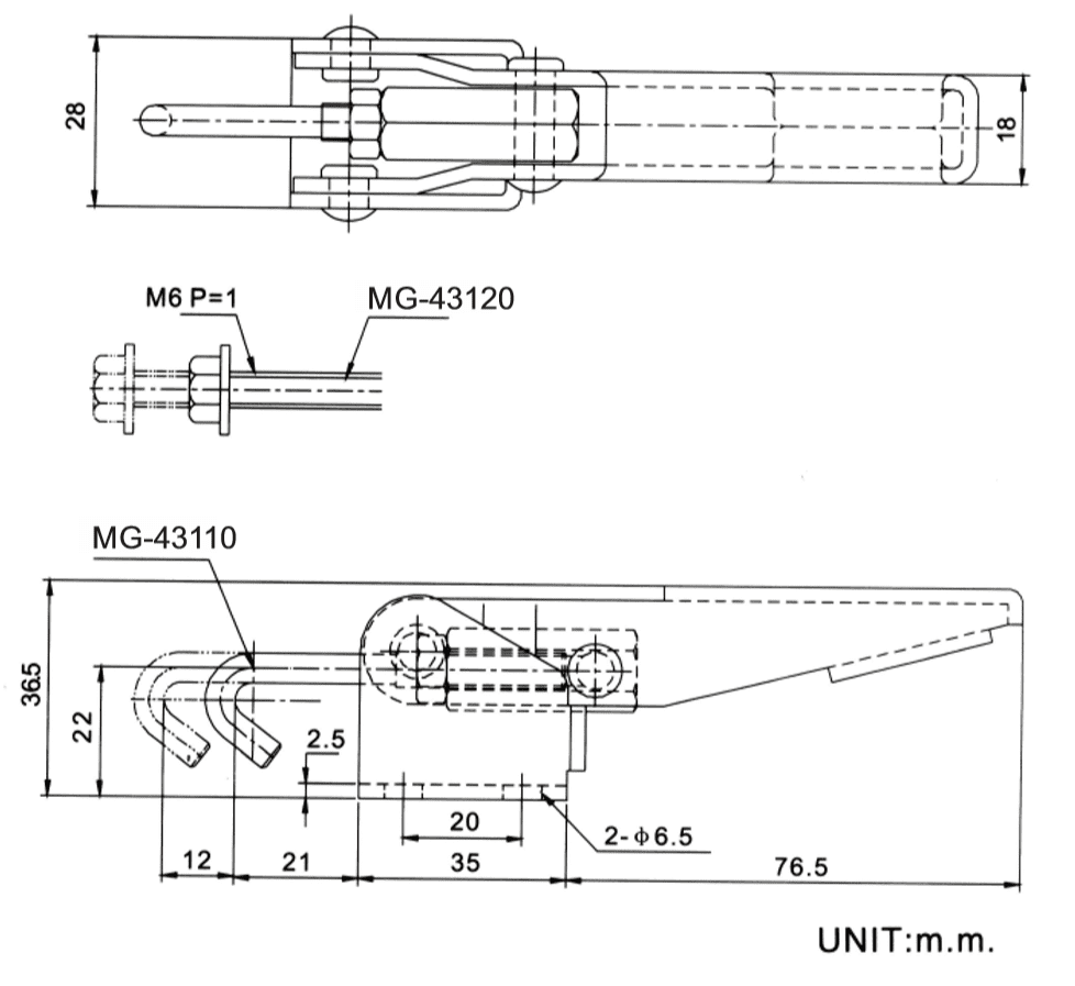 *MG-43110 Supplied with M6 P=1.0 hook bolt.