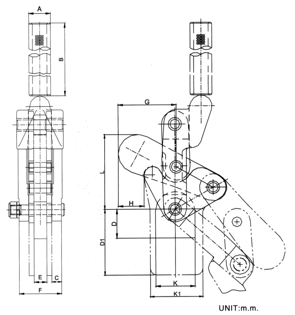 These heavy-duty clamps provide the strong and durable function to meet then requirement of high precision repeatability for car manufacturing industry, Drop forged parts are accurately machined and equipped with hardened pivot pins and bushings. The clamps are fitted with hardened and ground bushes and pivot pins.