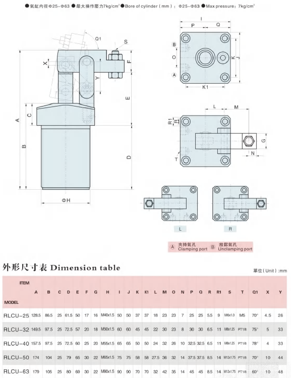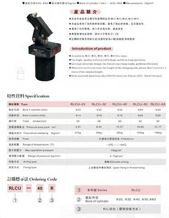★此系列產品有五種可供選擇的缸徑:Φ25,Φ32,Φ40,Φ50,Φ63。